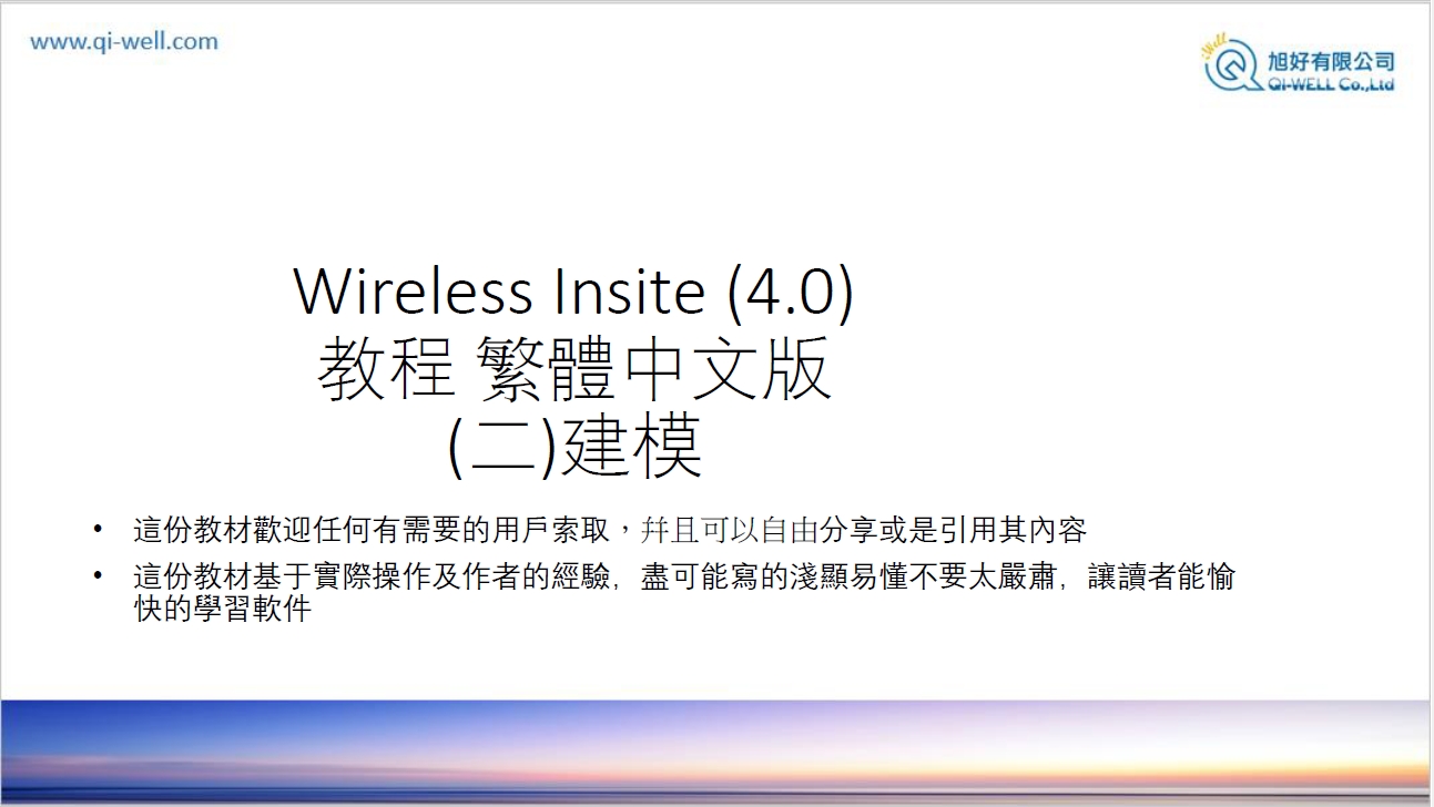 Wireless Insite 3.3 完整版教材下載連結 (文檔較大,約35-36 MB) : 繁體中文版 / 简体中文版
