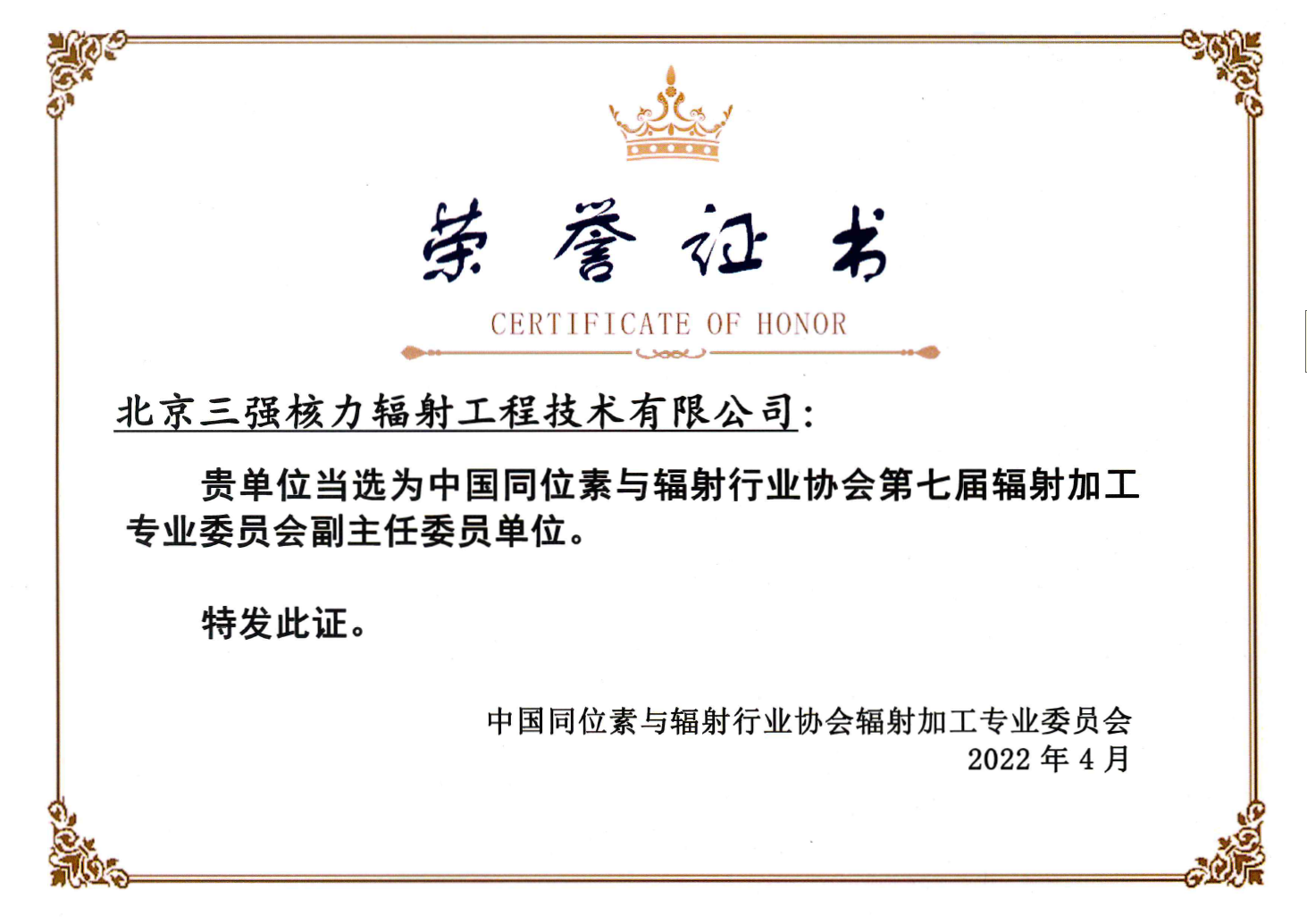 中國同位素與輻射行業協會理事單位及輻射加工專業委員會副主任單位