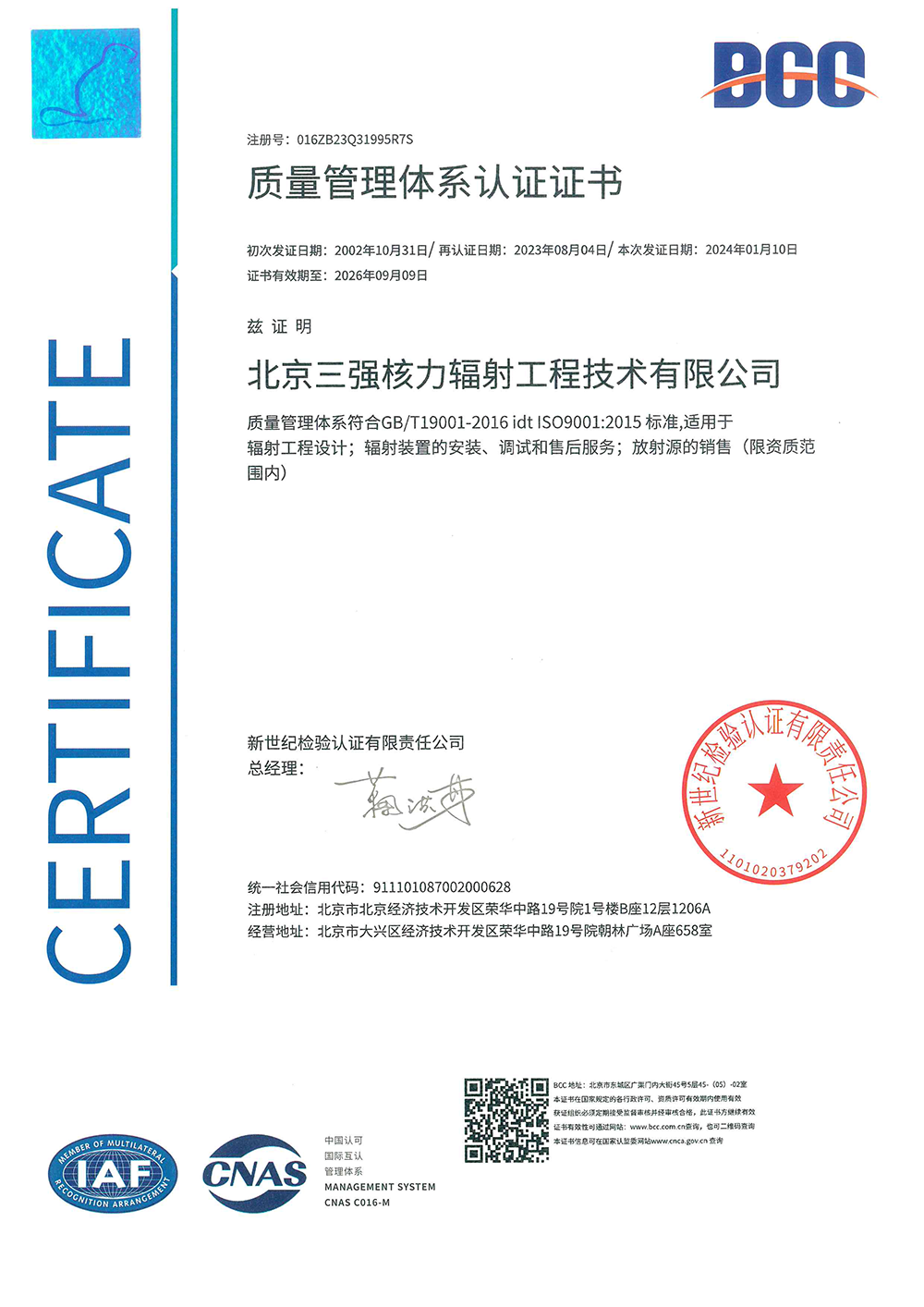 北京三强核力輻射工程技術有限公司成立於1998年,是集科工貿於-體的國家高新技術企業,是中國唯一一家同時擁有工業輻照裝置設計資質及I~V類放射源銷售與使用資質的民營企業。公司專注於核技術領域,是國際先進的核技術應用全方位解决方案提供商。