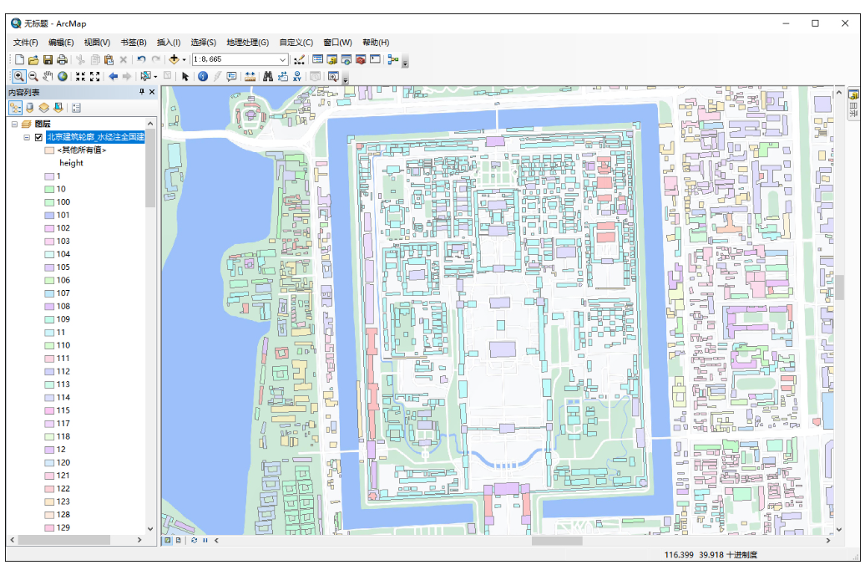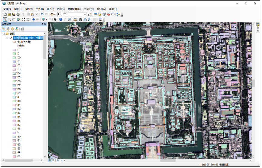 After projection conversion, the downloaded imagery data can perfectly overlay with vector data in the Beijing 54 coordinate system, as shown below.