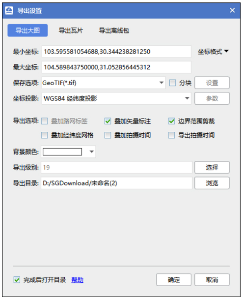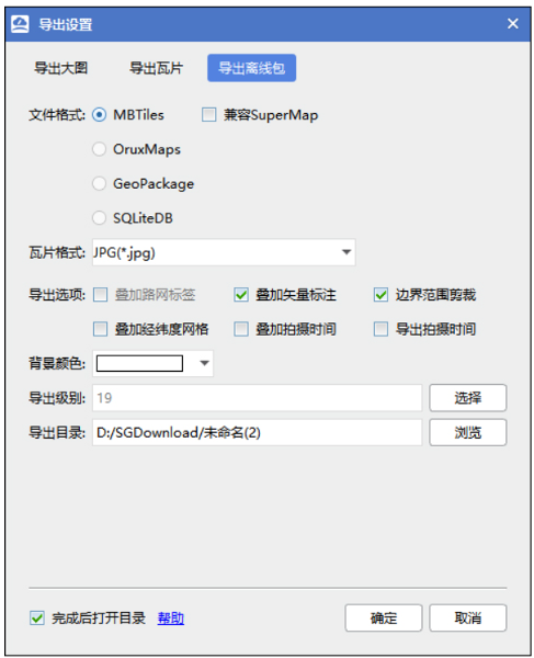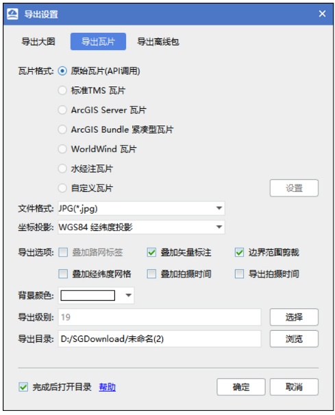 Downloaded satellite imagery or raster electronic maps can be exported as TIF, PNG, JPG, or BMP large images with projection conversion. They can also be exported as original TMS tiles, WorldWind tiles, Waterway Notes tiles, and versatile custom tiles. Additionally, offline packages such as MBTile, OruxMaps, GeoPackage, and SQLiteDB can be exported.