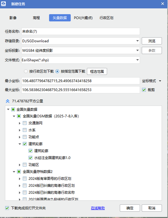 水經微圖WeMap can also download terrain and building outline data for many other regions in China, providing resources for various user projects.