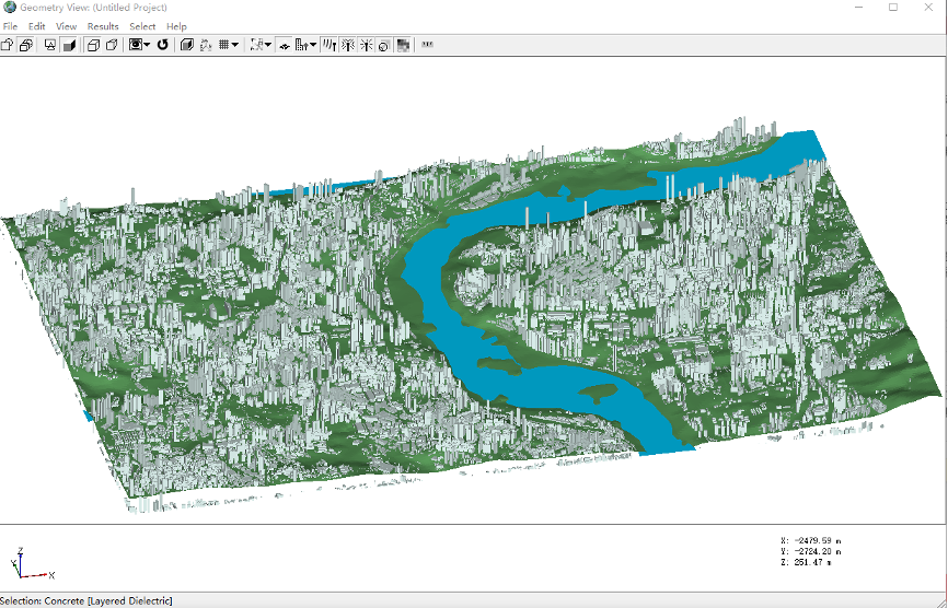 24. Import the river shapefile into Wireless Insite. Make adjustments as needed within Wireless Insite to complete the Chongqing market scene model.