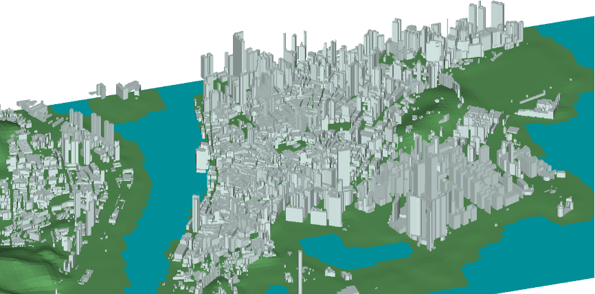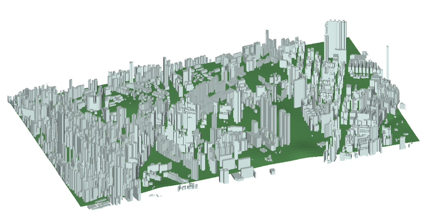 18. Select one set of building outlines to import into Wireless Insite and combine it with the terrain map to form a city model (This example uses Baidu Buildings).